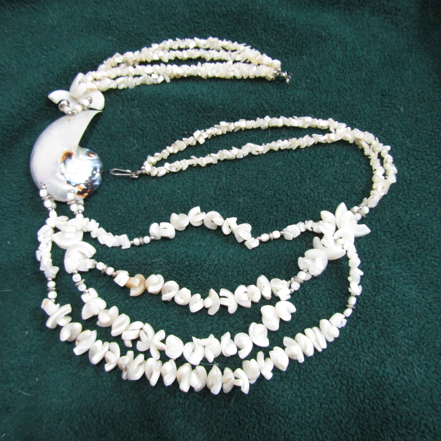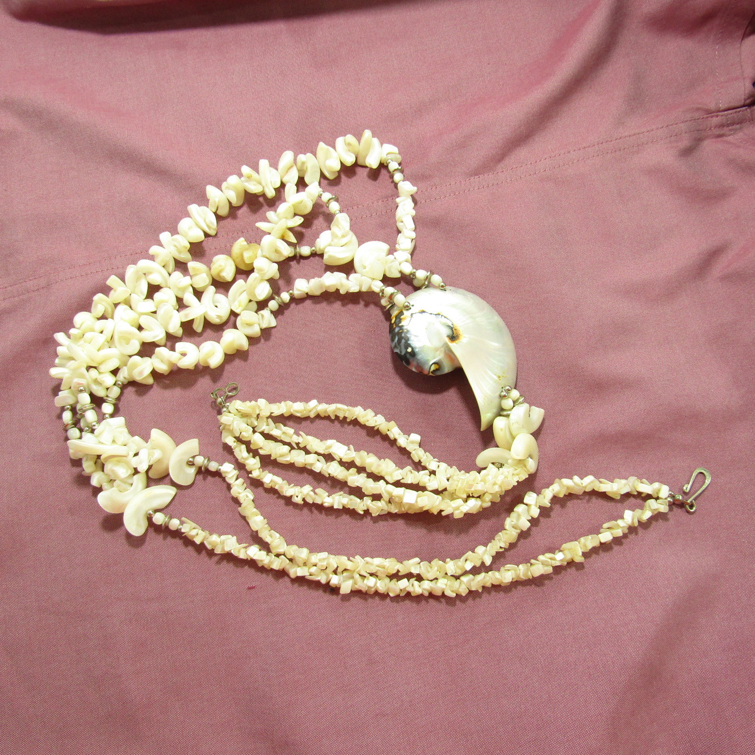 - Hawaiian Boho Summertime Spring Ocean Puka Shells Necklace with Large Shell