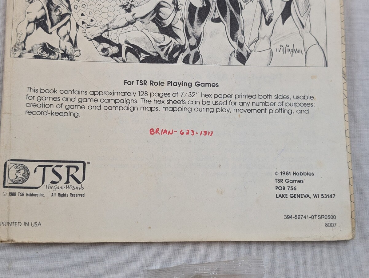 Up for sale is a Dungeons Dragons HEXAGONAL MAPPING BOOKLET #8007 from 1981 TSR Games 6 of the 128 pages have been fully/partially filled in BONUS: Includes new dice Buyer to pay for USPS Ground Advantage or Priority Mail shipping. I ship no later than next day after payment. I will combine shipping if paid together. If you buy multiple items from me, please wait for a combined invoice before paying. I will accept returns within 30 days. From a smoke free home I am an honester who buys and sells things to have fun and make a little extra cash -- this is not my primary job. If for any reason you are not completely happy please let me know before leaving negative or neutral feedback, leaving less than 5 on the Detailed Seller Ratings or getting involved and I will make it right. Thanks