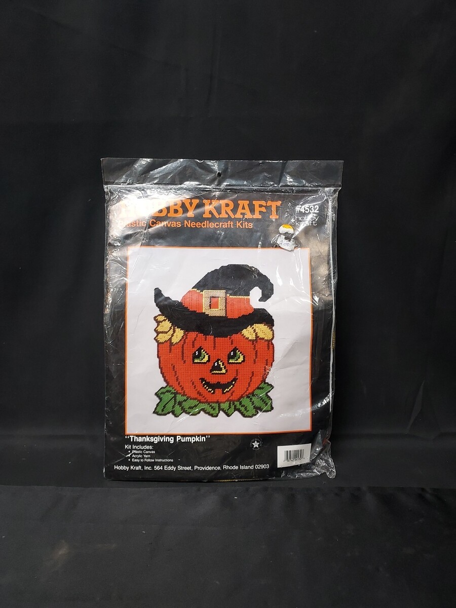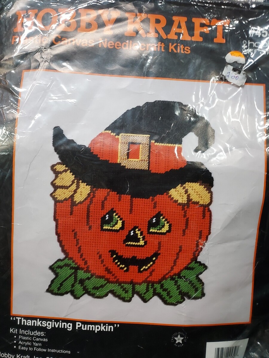 Hobby Kraft Thanksgiving Halloween Pumpkin Plastic Canvas Yarn Needlepoint Kit. Condition is New. Shipped with USPS Ground Advantage.