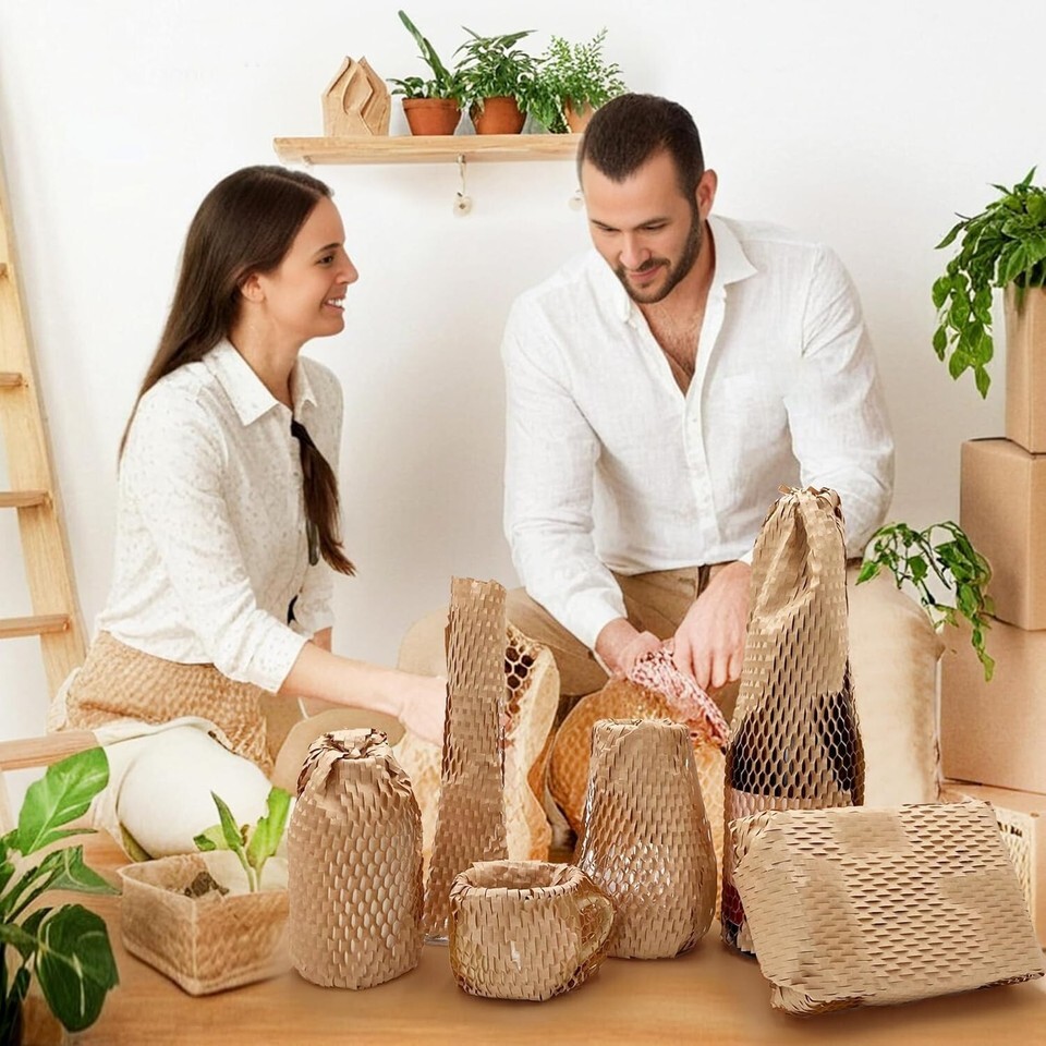 Eco-friendly and Sustainable: Our honeycomb packing paper is a recyclable and biodegradable packing paper for moving, making it a green alternative to traditional plastic bubble wrap rolls