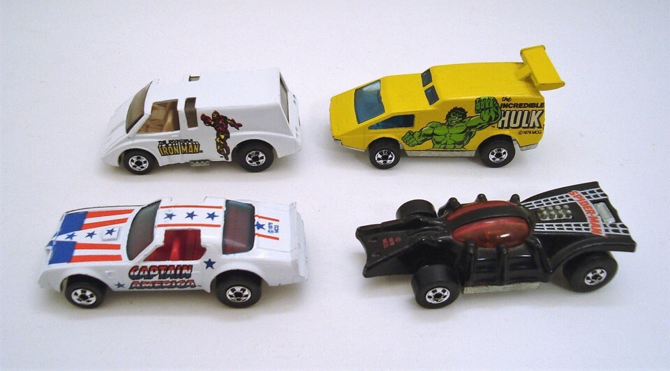 - Hot Wheels THE HEROES 1979 Complete 8 Car Set Captain America, Thor, Iron Man