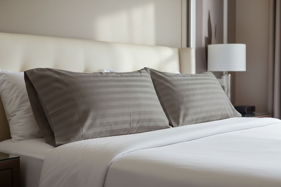 Hotel Style Egyptian Cotton Damask Stripe Pillowcase Set Wild Mushroom King Size
