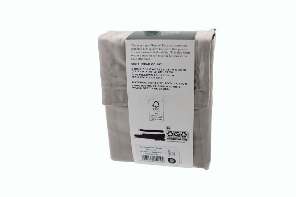 - Hotel Style Egyptian Cotton Damask Stripe Pillowcase Set Wild Mushroom King Size