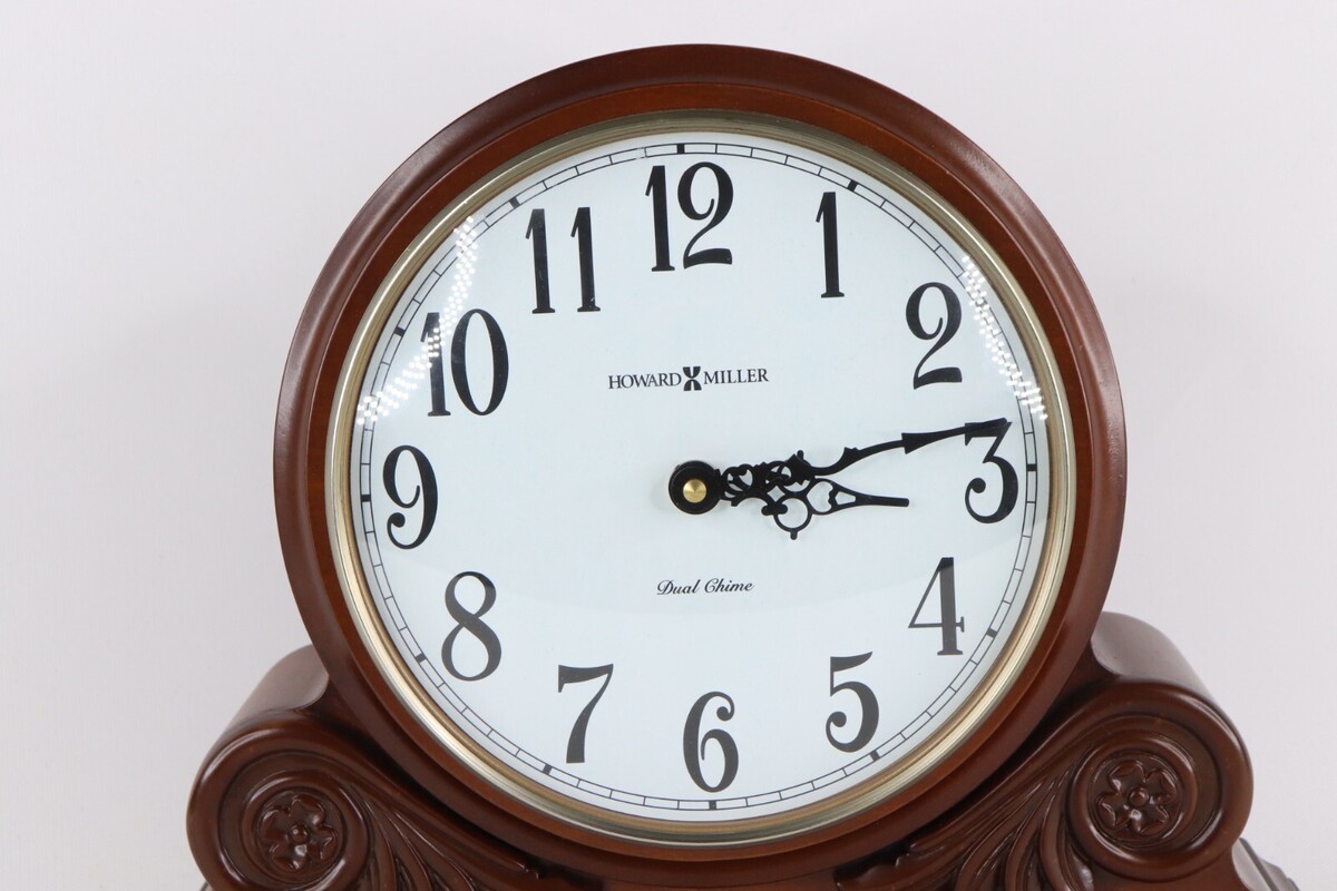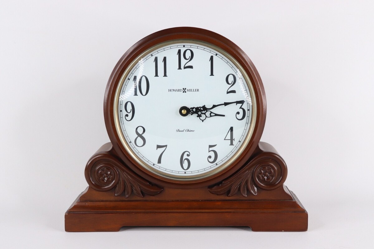 - Howard Miller Desiree Chiming Quartz Mantel Clock Desk Table Clock Carved Wood