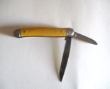 The Imperial 2-Blade Pocket Knife is a vintage collectible from Providence, Rhode Island, USA. Featuring a classic yellow handle and two straight carbon steel blades, this manual pocketknife is ambidextrous and perfect for everyday carry. It has a silver color crown motif on one side. The vintage design and original craftsmanship make it a sought-after piece for collectors of vintage folding knives. With its compact size and durable construction, this pocket knife is a timeless tool that exudes nostalgia and functionality. It is is good vintage condition with small amount of wear. We ship quickly!!