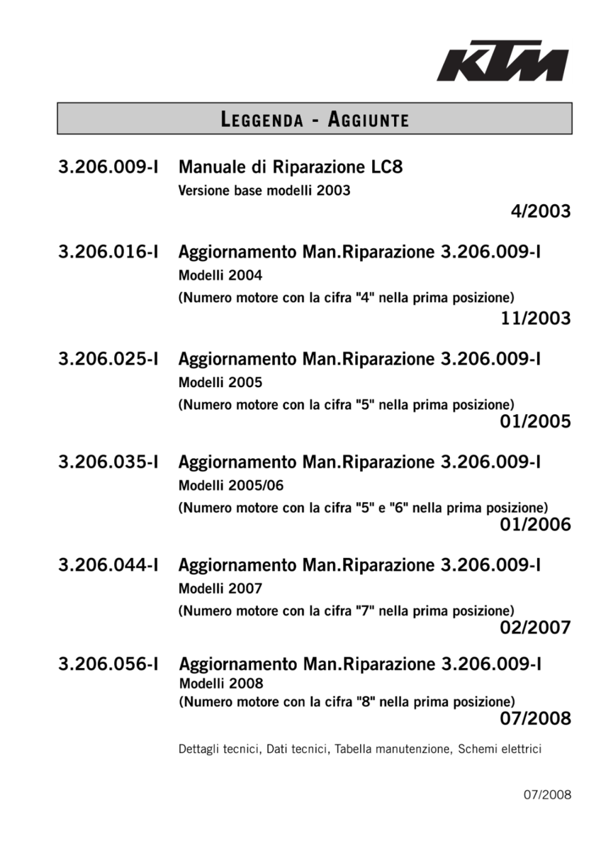 ITALIAN LANGUAGE - 2003 TO 2008 KTM 950 SUPER ENDURO - MANUALE DI RIPARAZIONE