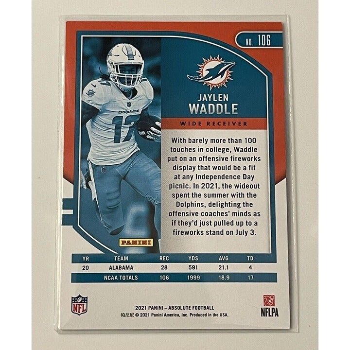 - Jaylen Waddle RC 2021Panini Absolute Football Rookie NFL Miami Dolphins Card 106