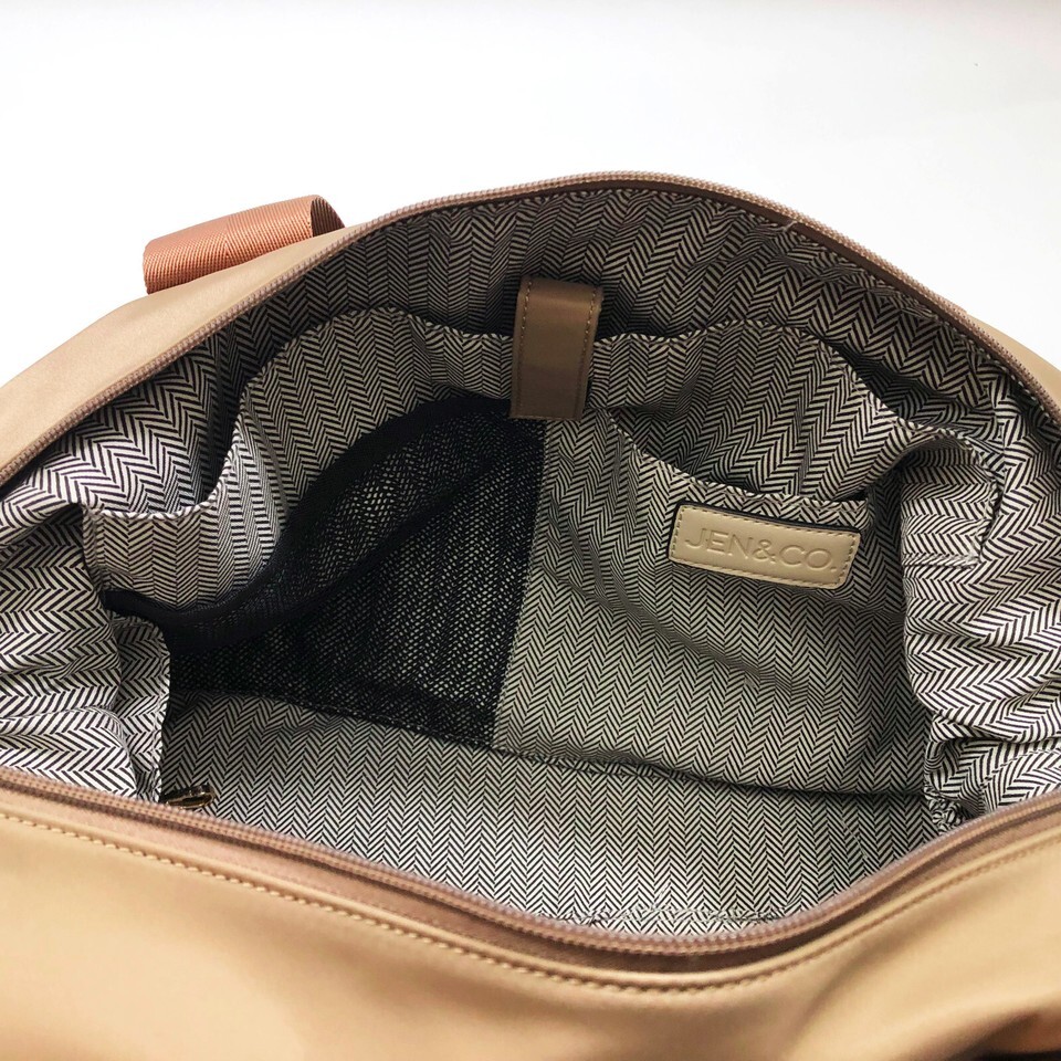 Jen & Co Taupe Weekender Nylon Bag with Trolley Sleeve 19 x 11 x 7 inches