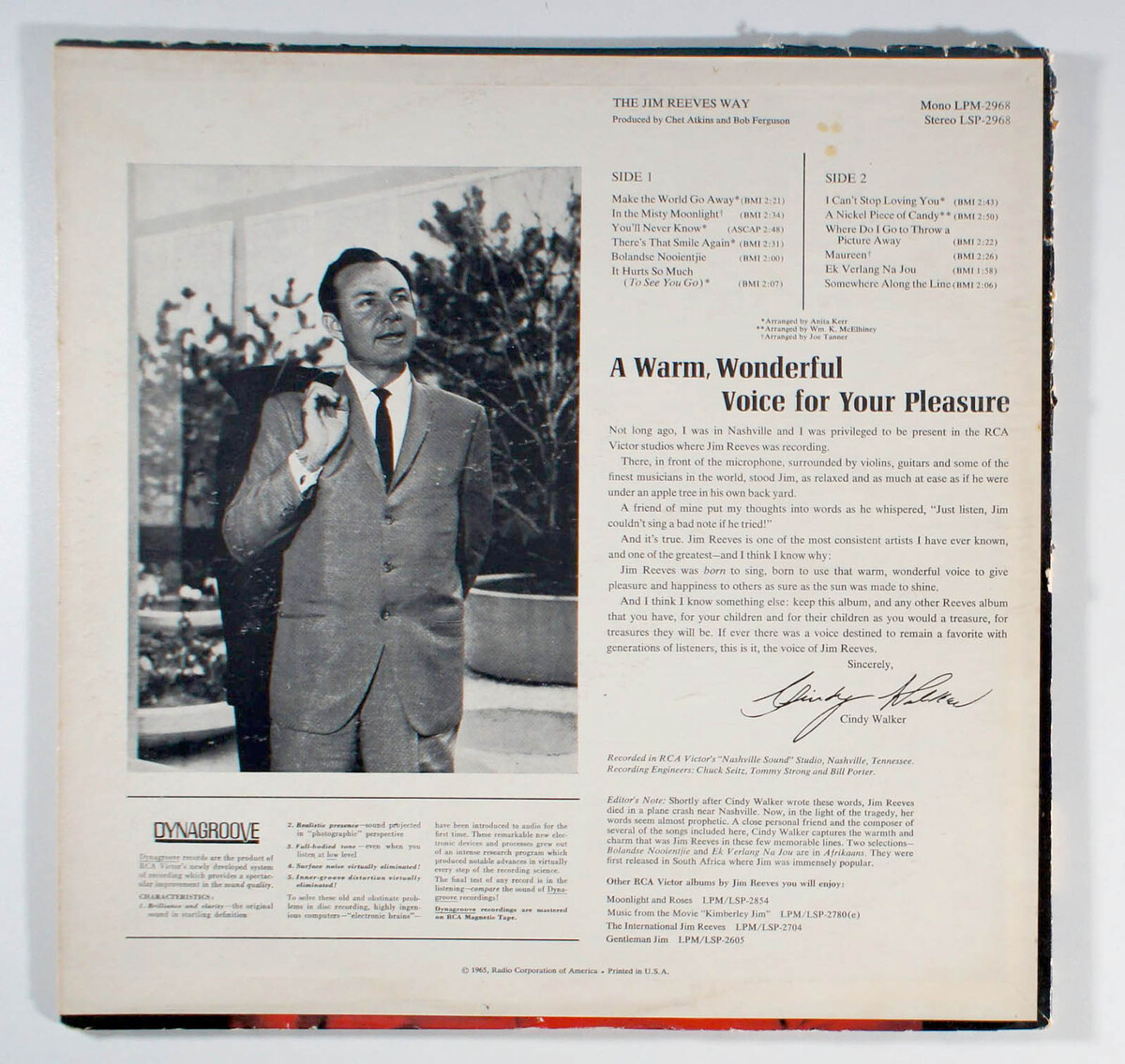 Jim Reeves - The Jim Reeves Way (1965) Vinyl LP Chet Atkins