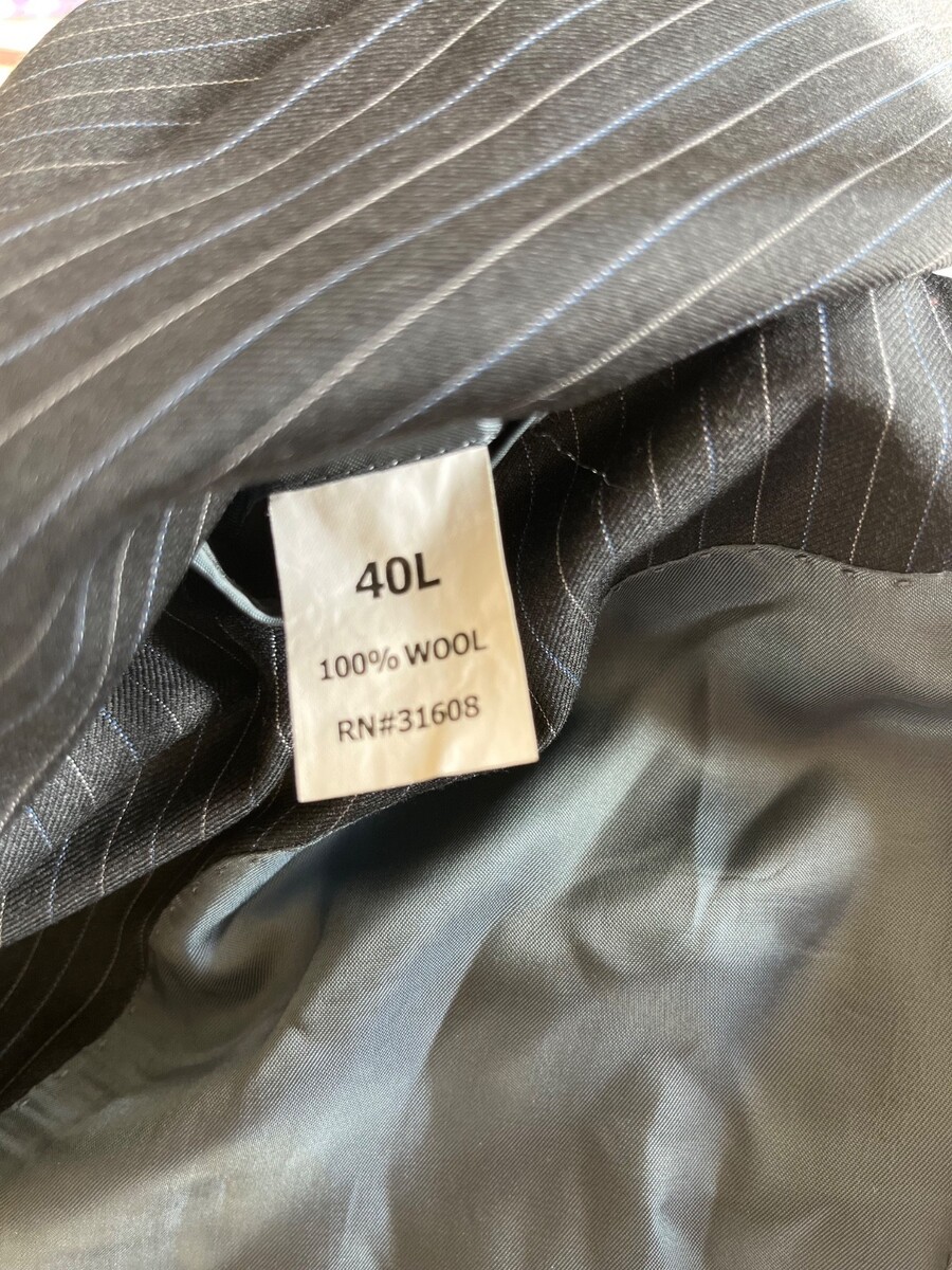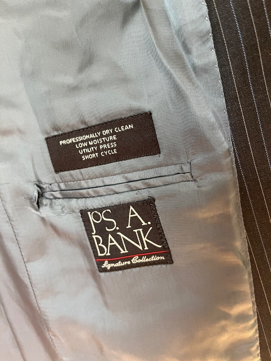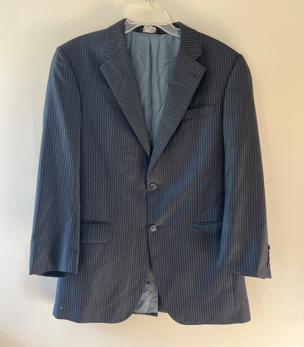 - JoS. A. Bank Sz 40 L Jacket Wool Pinstripe Dark Blue Single Breasted Blazer Coat