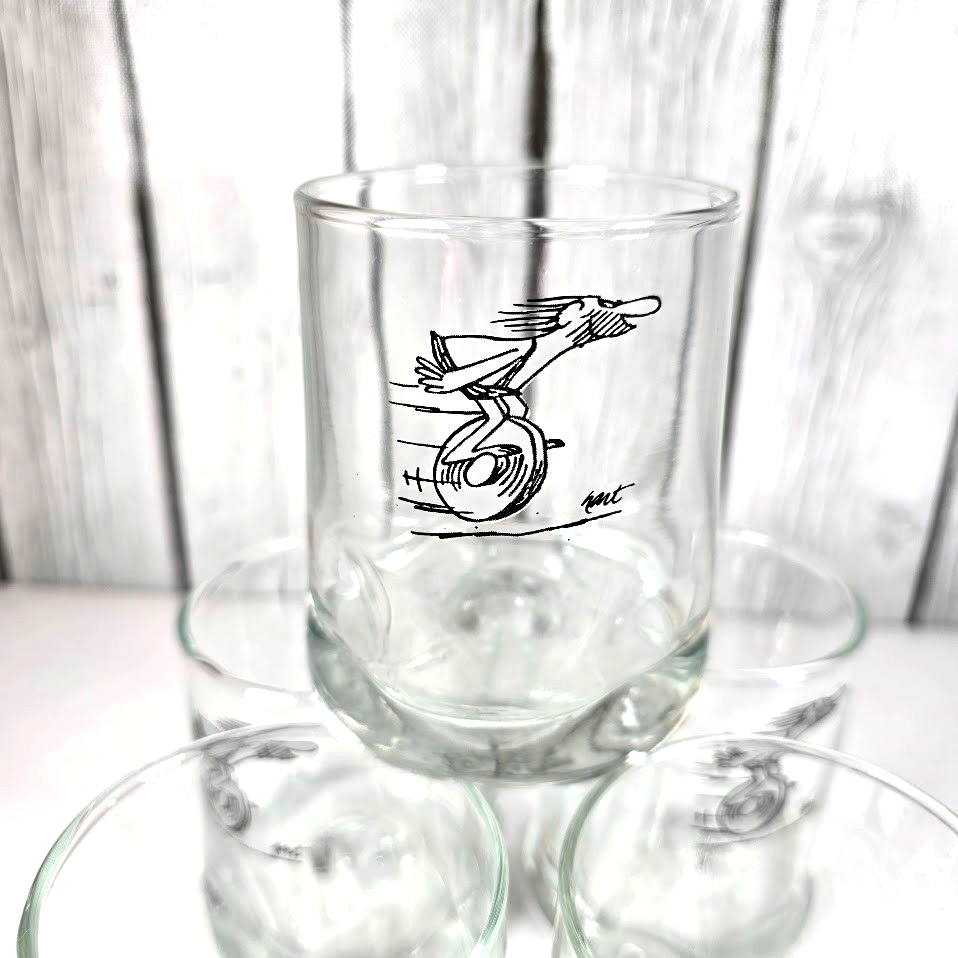 Johnny Hart B.C. Comics Thor On Wheel Unicycle Pinched Rock Lowball Glasses Set