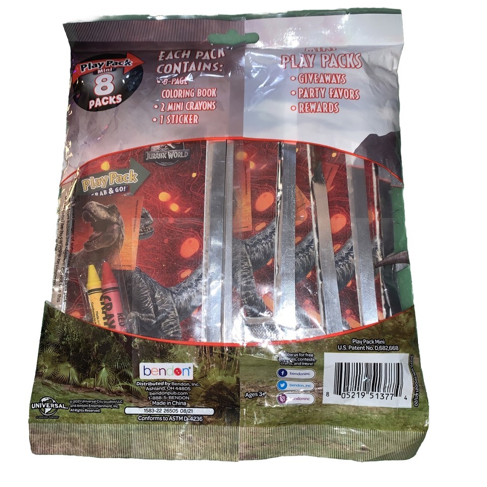 Primary image for JURASSIC WORLD 8 MINI PLAY PACKS - COLORING BOOK, CRAYONS AND STICKER