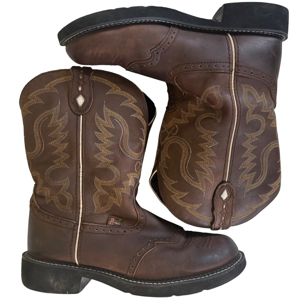 - Justin Boots Gypsy L9909 Brown Leather Western Boots Sz 11 B 9″ Shaft
