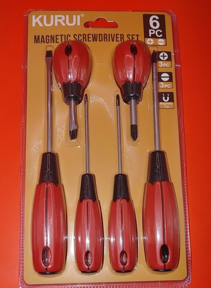 KURUI Magnetic Screwdriver Set 6-Piece Tool Set 3 Phillips and 3 Flat Head