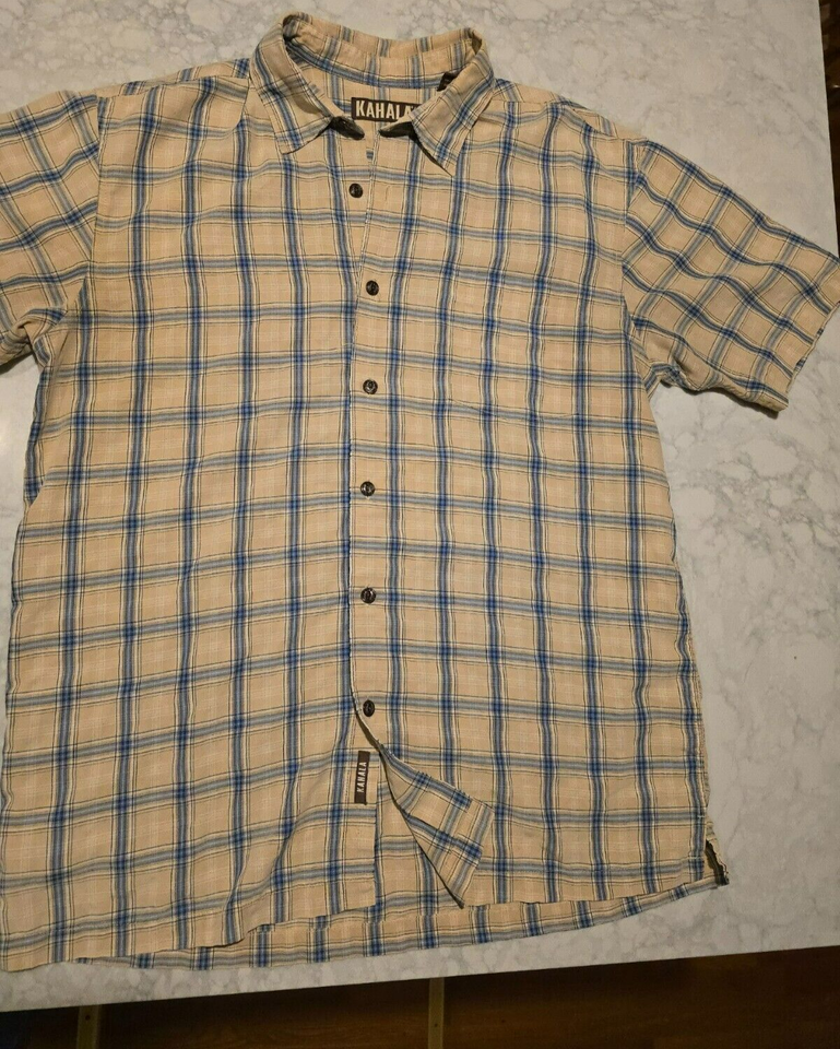 - Kahala Mens Button Up Shirt: Hawaiian Style Plaid, Original Aloha Shirt: SIZE L