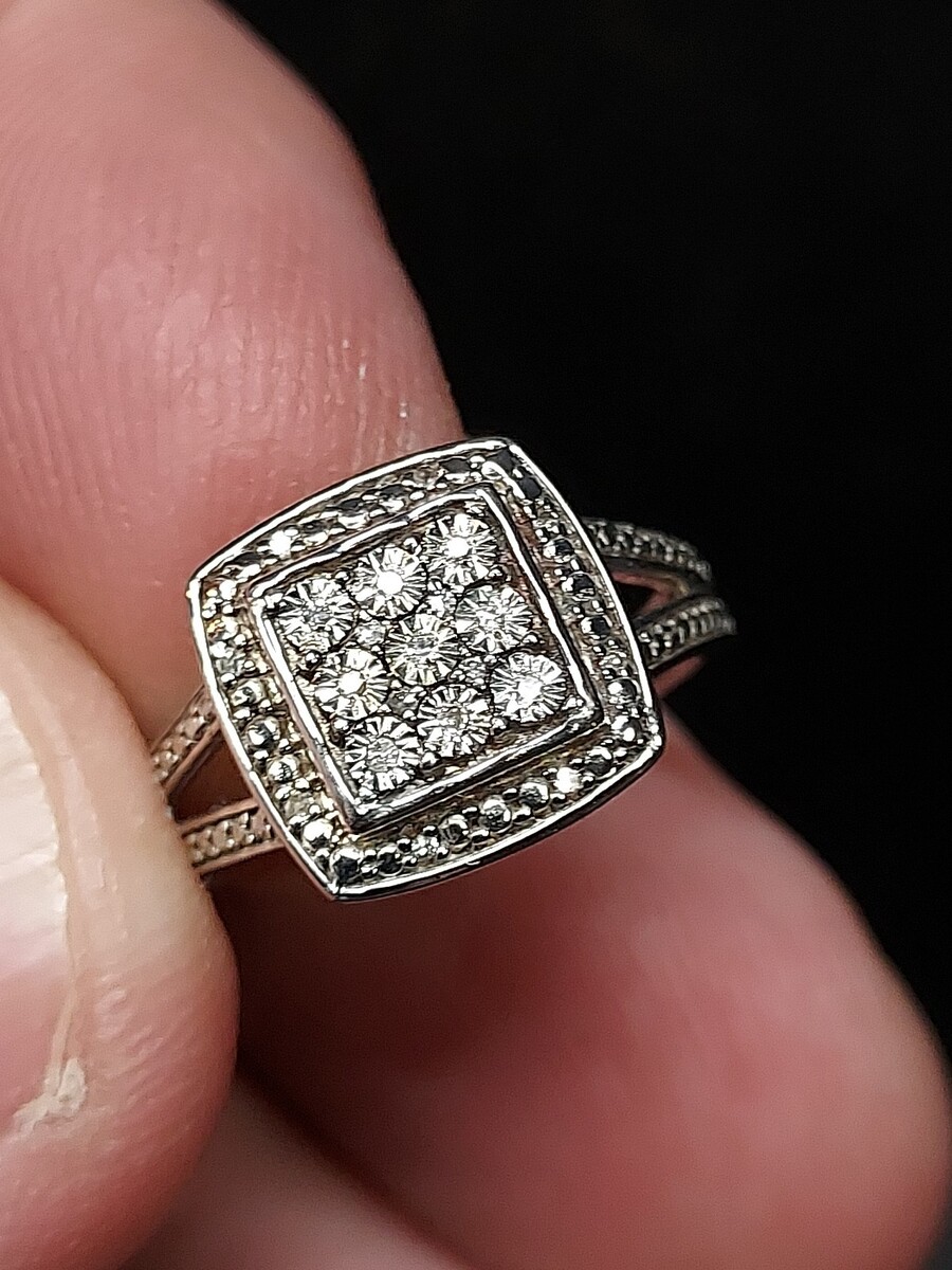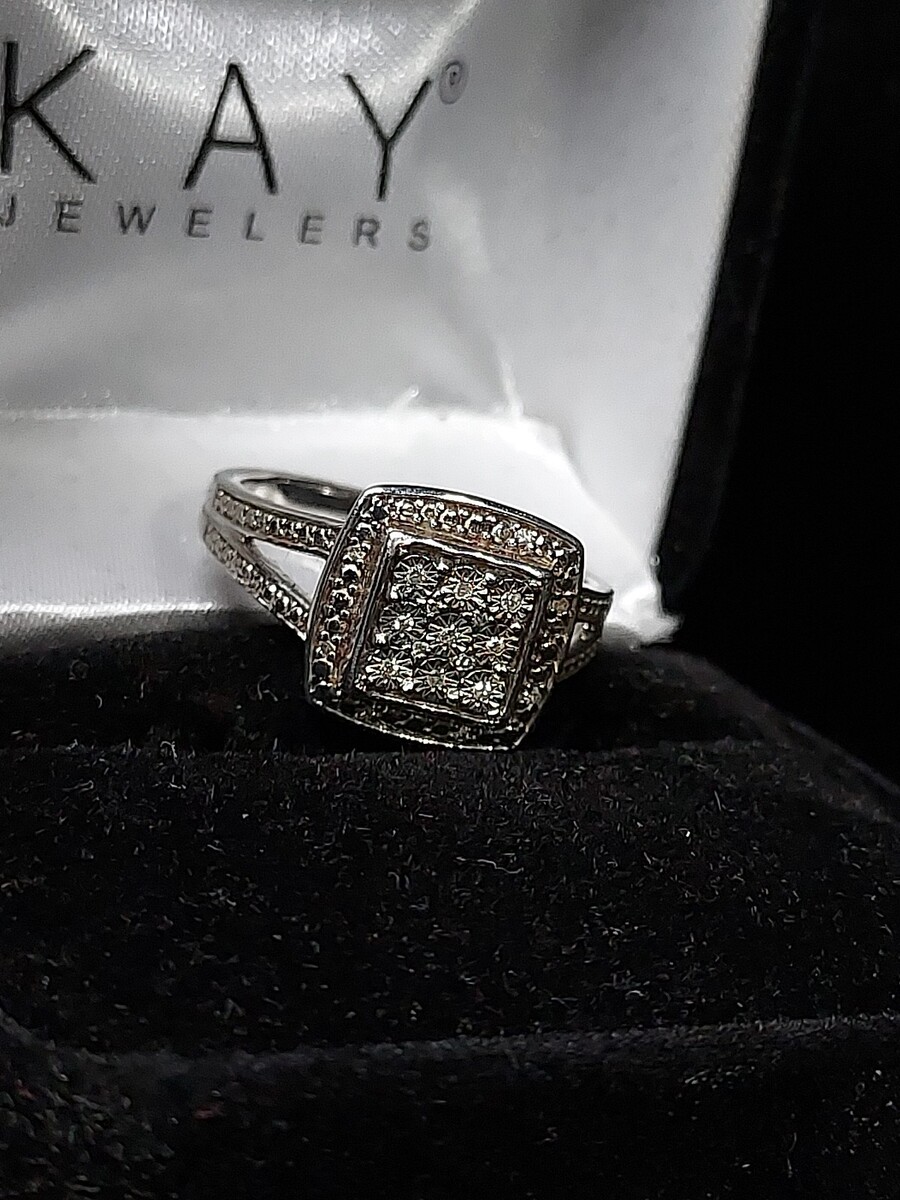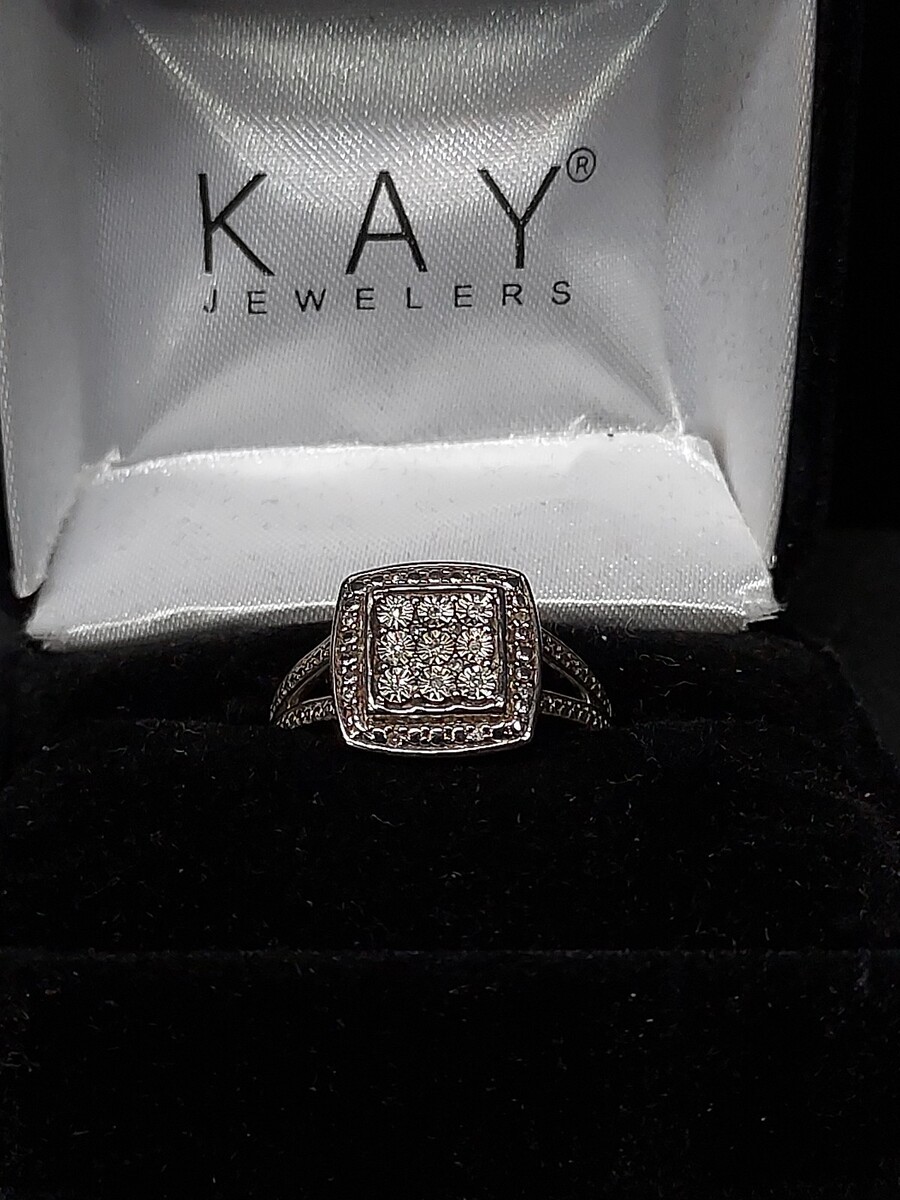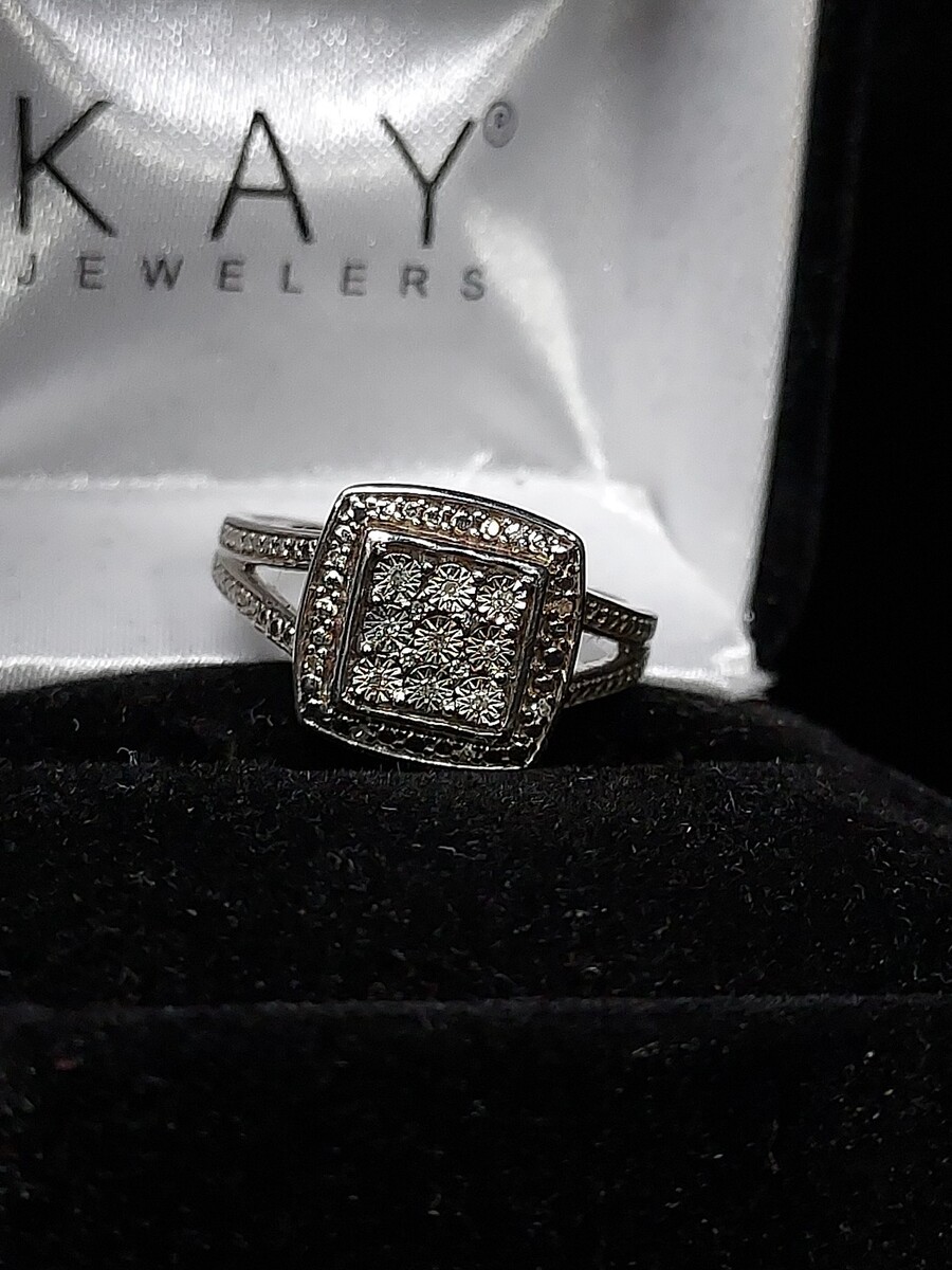 - Kay Jewelers Sterling Silver & Diamonds ? Ring Size 7 Halo Style Engagement Gift