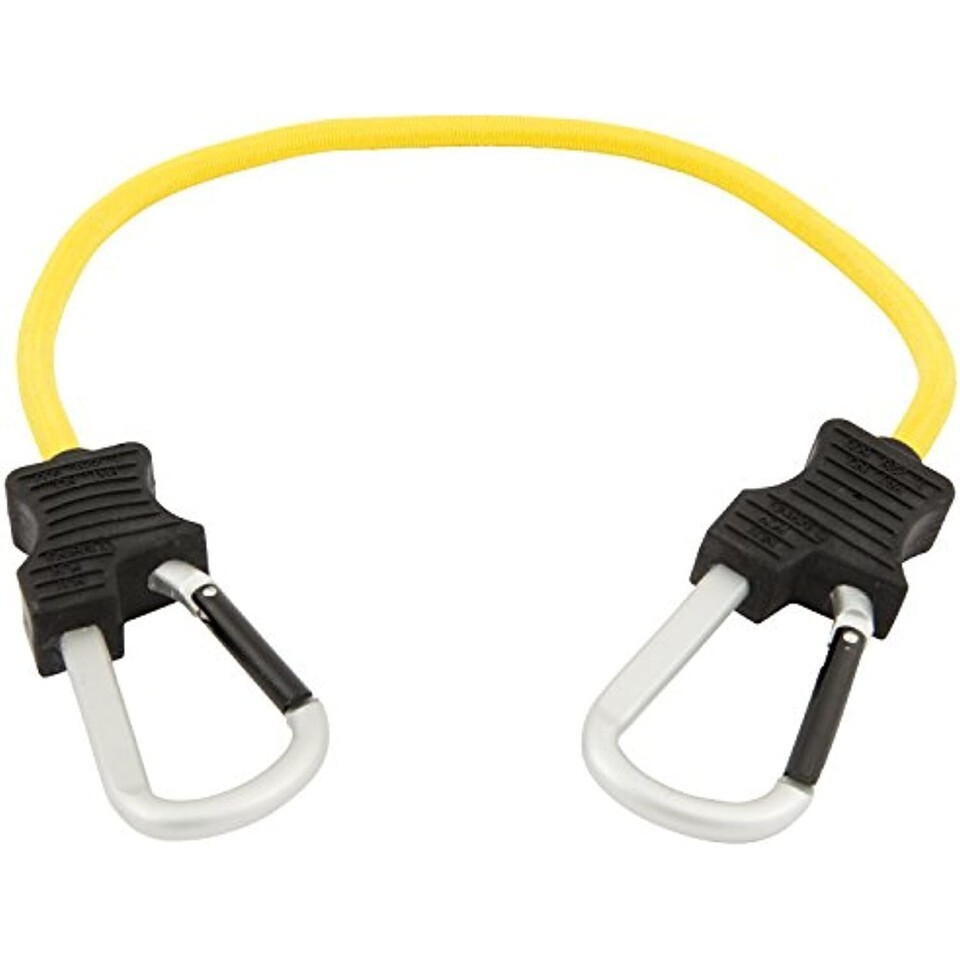 Weather Resistant: Keeper 24 in. Carabiner Bungee Cord is designed to withstand UV rays and weather damage and is enhanced with a fluorescent yellow jacket to ensure quick and easy visibility.