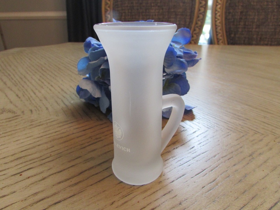 Keglevich Italian Vodka Tall Shotglass Frosted white Keglevich, Italian Vodka Measures 4" tall and 2.75" opening at the top Excellent condition, no niks BUY SEVERAL ITEMS AND SAVE BIG ON SHIPPING. PLEASE WAIT FOR ME TO COMBINE YOUR INVOICE FOR THE BEST PRICE. THANK YOU FOR SHOPPING WITH ME. TAKE YOUR TIME, BROWSE MY STORE, LOTS OF MERCHANDISE, NEW LISTINGS DAILY. I DO MY BEST TO SHIP ASAP, CHECK MY FEEDBACK. RETURNS: UPON RECEIVING YOUR ORDER, IF THERE IS AN ISSUE WITH THE ITEM/S PLEASE CONTACT ME SO WE CAN WORK OUT A SOLUTION. THANK YOU AGAIN FEEL FREE TO ASK ME QUESTIONS. THANKS