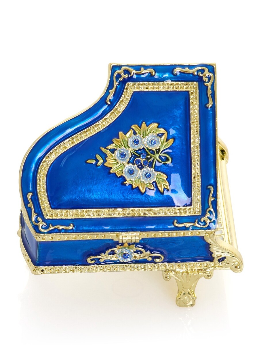 - Keren Kopal Blue Flowers Piano Trinket box Decorated with Austrian Crystals