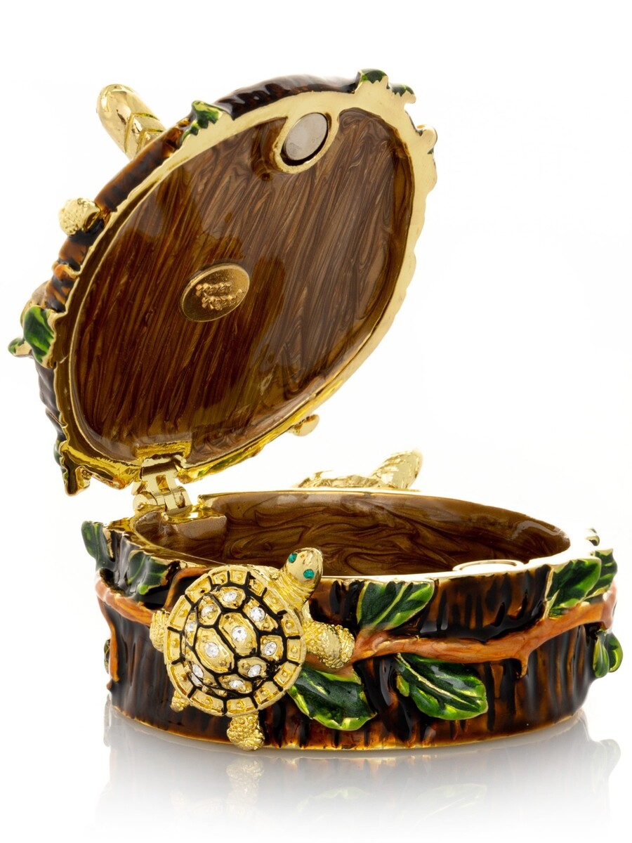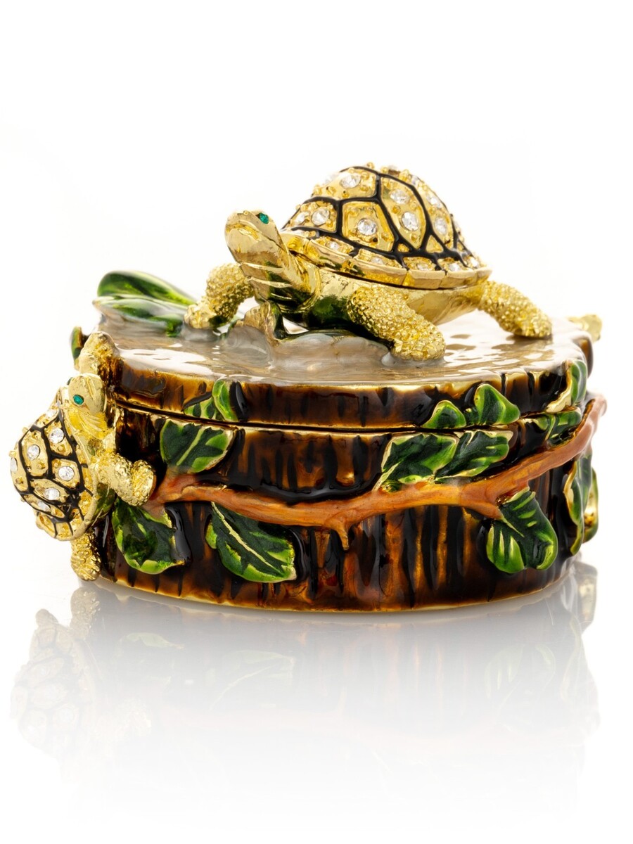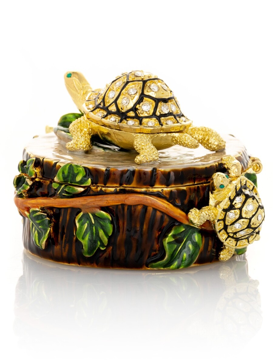 - Keren Kopal Turtles on Tree Trunk Trinket Box Decorated with Austrian Crystals