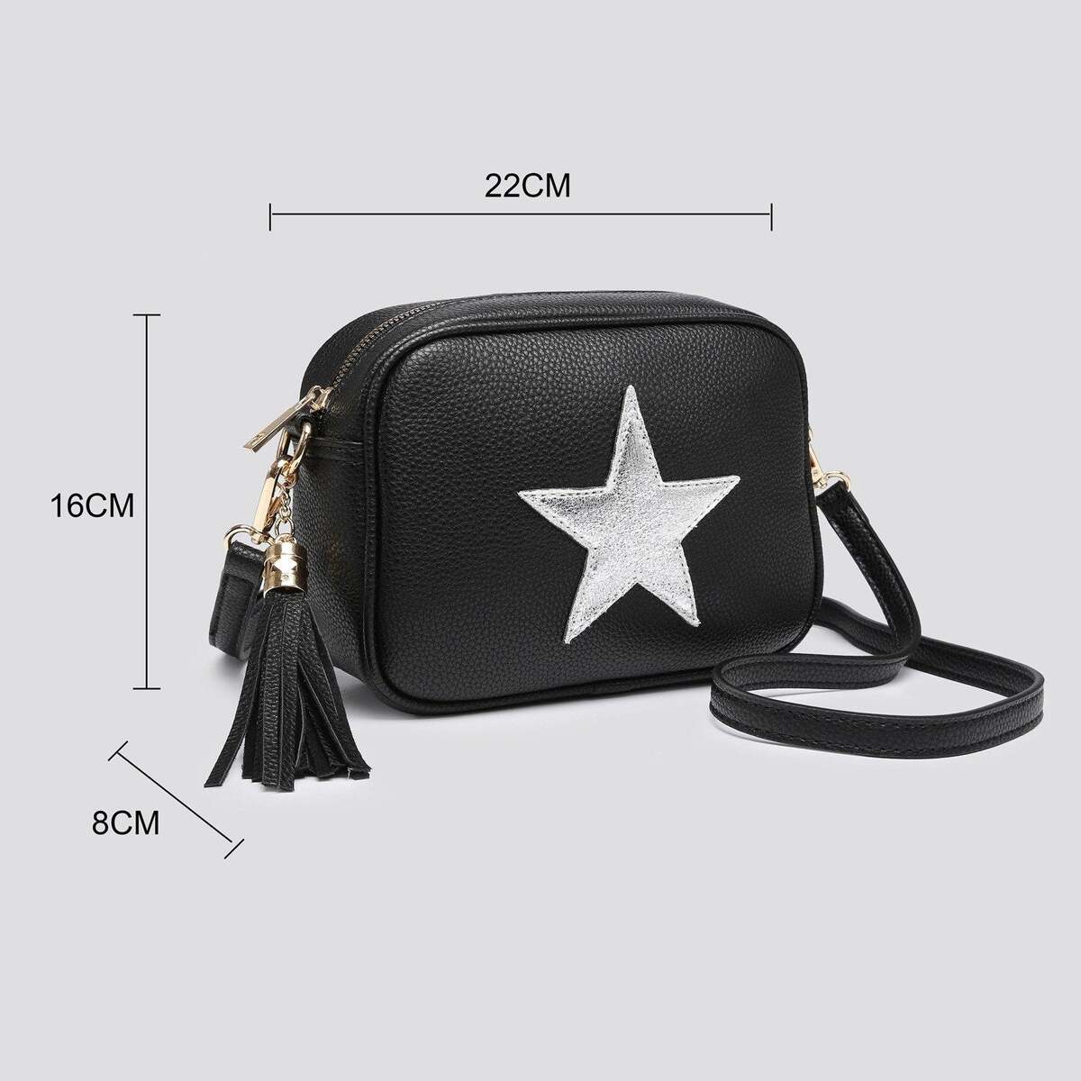 Lady faux leather handbag with a glitter star with a detachable shoulder strap