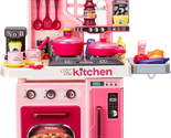 Kids Kitchen Playset-53Pcs Cooking Stove,Paly Sink,Oven,Kitchen Toys with Realistic Lights Sounds, Pretend Play Toys,Kitchen Toys for Toddlers 1 2 3 (Pink)