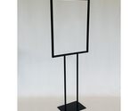 Product description: Economical, free standing two sided sign holder floor stand offering premium size and visibility. Graphics insert into the top for easy message placement and re-placement. Sturdy round tubular uprights, coupled with a weighted rectangular base, provides excellent stability. Ships flat with some assembly required. For in store use.; ; Color: Black Material: Metal Purpose: Poster Frame Product Type: Sign Holder Height: 59 in. Width: 22 in. Brand Name: Kinter Kinter