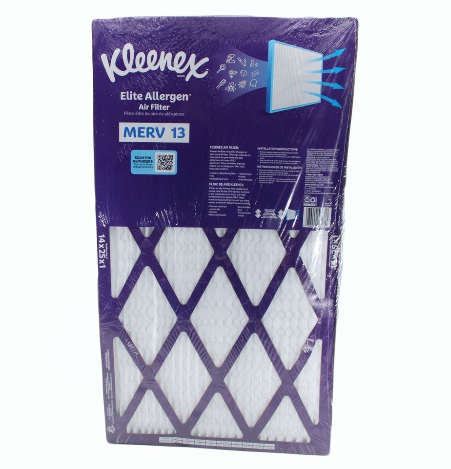 - Kleenex Elite Allergen Air Filter 14x25x1 Inches 13 MERV RATING (2-Pack) Dented