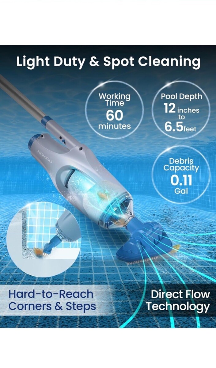 - KOKIDO XTROVAC 110 Rechargeable Handheld SWIMMING Pool Vacuum Set Model EV05
