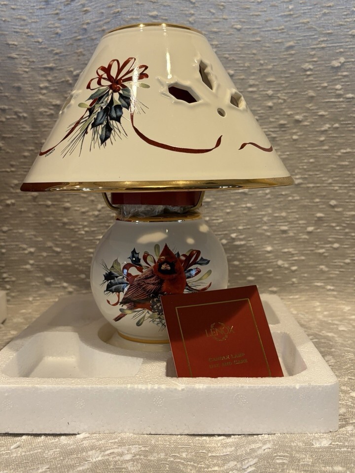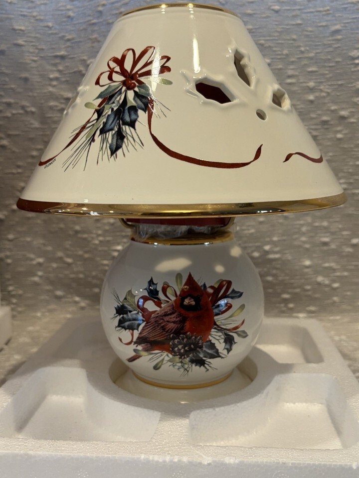 - LENOX Winter Greetings Red Cardinal & Holly Berries Candle Lamp Read