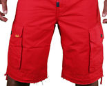 This is for a brand new with tags LRG Lifted Research Group Sharks Landing Red Walk Cargo Shorts Red with yellow and navy accent stitching Drawstring at the distressed bottoms.