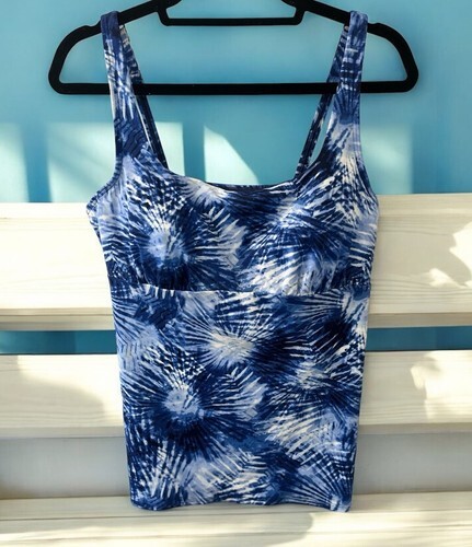 Primary image for Lands End Navy Blue White Tie Dye Palms Square Neck SIZE 14L Tankini Swim Top