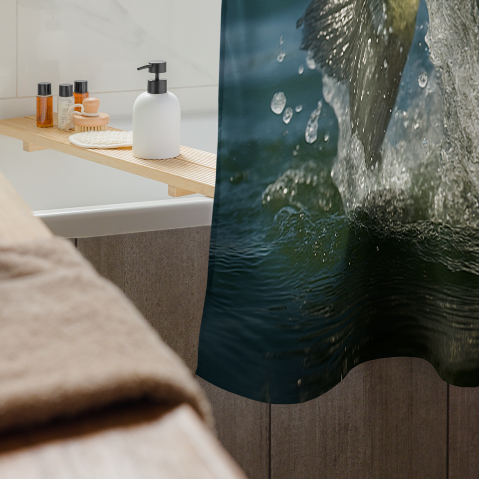 - Largemouth Bass Shower Curtain 71x74 | Water-Resistant Polyester Lake Scene