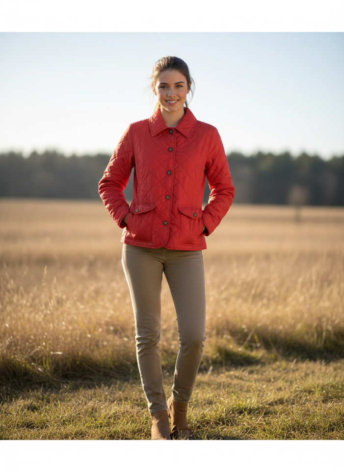 - Lauren Ralph Lauren Women's Red Quilted Riding Jacket Size S