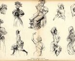 Le Rire - "Parisians of yesteryear and today" "Croquis Inedits" (Unpublished Sketches) by Jules Cheret Circa 1890 Sheet size 18 x 12" A original vintage illustration from Le Rire magazine.