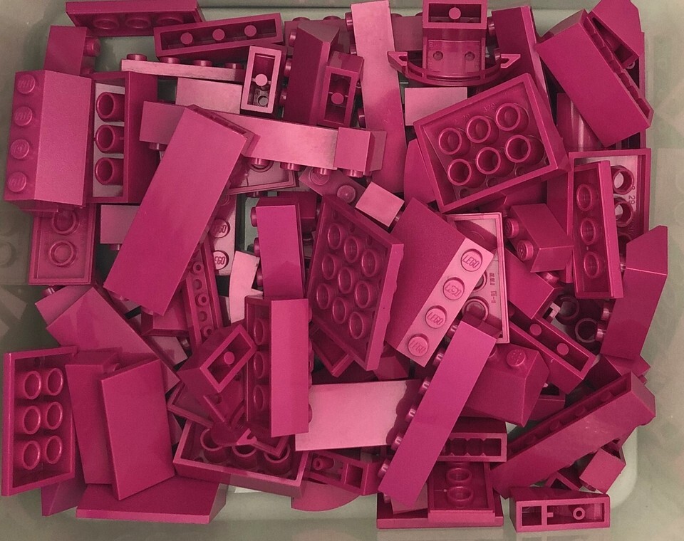 This Lego set #1 includes 125 pieces of dark pink Lego blocks and bricks of various sizes. I have more Legos and other Lego lots like this and combined shipping is added in cart for multiple purchases.