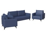 Expertly blending modern sophistication with exceptional comfort, the Inno Sofa Set by LeisureMod includes a three-seater and two single-seater armchairs. The premium leather upholstery, combined with generous foam padding and plush armrests, offers a luxurious and inviting seating experience. Our sofa set features high-quality PU leather upholstery, offering a sophisticated and elegant look. This premium material is water-resistant and scratch-resistant, ensuring durability and longevity. It provides a soft and relaxing seating surface that is both stylish and practical, making it an ideal choice for any modern living space. Built with a solid wood frame and sleek steel legs, the Inno Modern Sofa Set guarantees durability and stability. The robust construction supports up to 300 lbs. for the single-seaters and 800 lbs. for the three-seater, offering reliable seating for users of all sizes. Elevate your seating experience with our sofa's removable back cushions, offering a blend of tranquility and practicality. It not only provides excellent lumbar support but also allows for easy cleaning and customization. You can adjust the cushions to suit your preferred seating position, ensuring optimal comfort during extended periods. Our sofa set offers ample room to comfortably accommodate up to five people, making it perfect for gatherings and family time. With generous seating space and a thoughtful design, everyone can relax and enjoy quality time together without feeling cramped or uncomfortable. Keep your sofa looking fresh effortlessly. A quick wipe with a damp or dry cloth is all it takes to maintain its pristine appearance, ensuring long-lasting beauty without the hassle of extensive cleaning routines. Enjoy the convenience of easy upkeep, allowing you to focus on relaxing and enjoying your stylish seating furniture. Assembly is a breeze with our sofa set. The package includes clear, step-by-step instructions that guide you through the process, ensuring a quick and hassle-free setup. Spend less time assembling and more time enjoying the elegance of your new furniture.