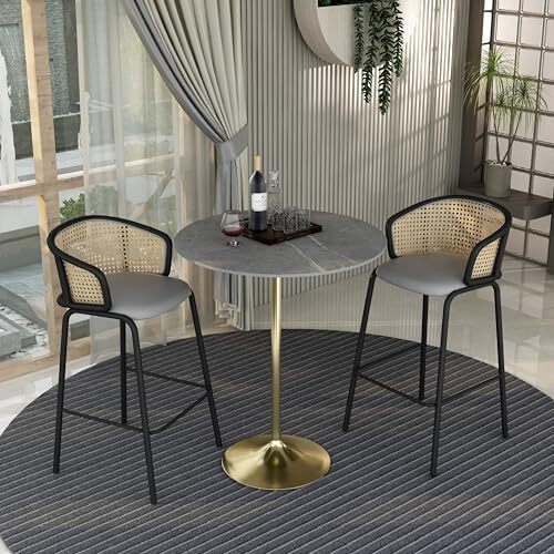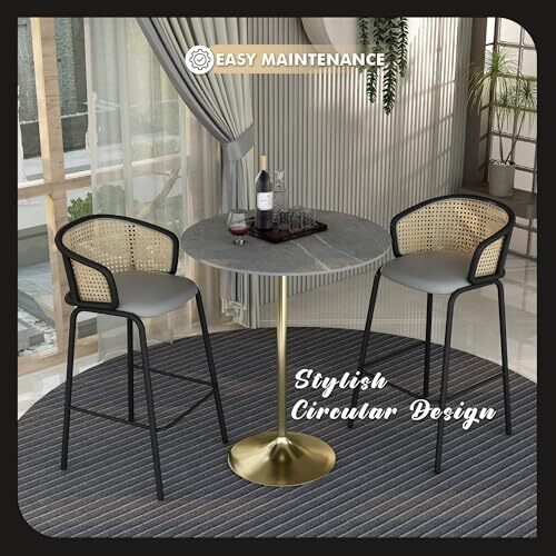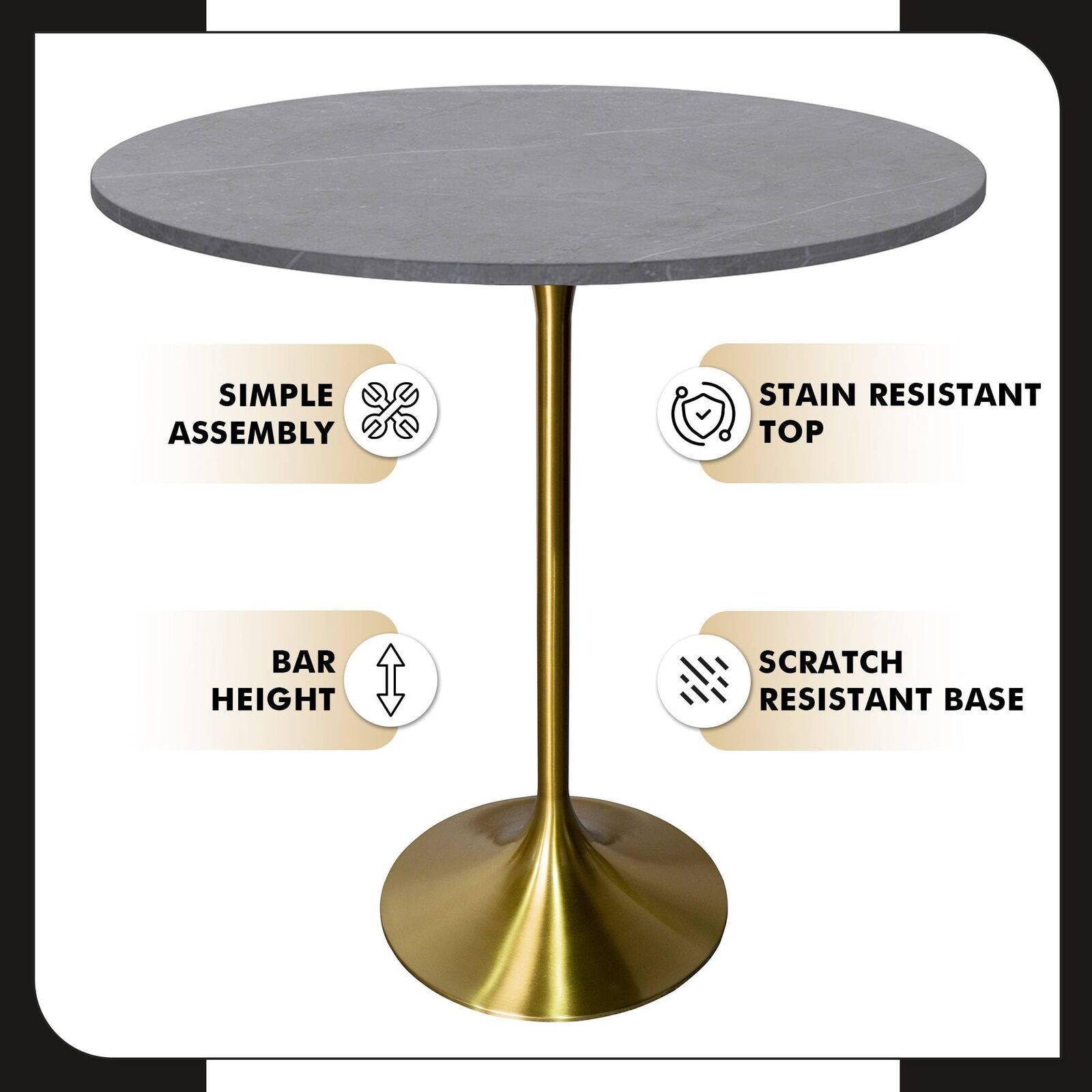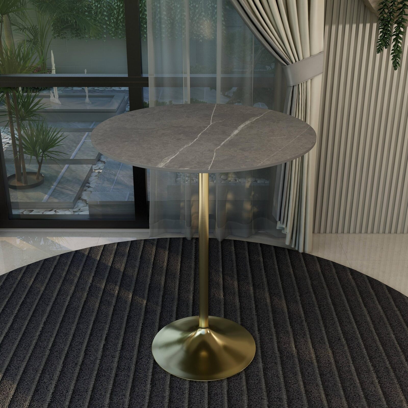 - LeisureMod 36" Round Bar Height Dining Table with Sintered Stone Top and Gold St