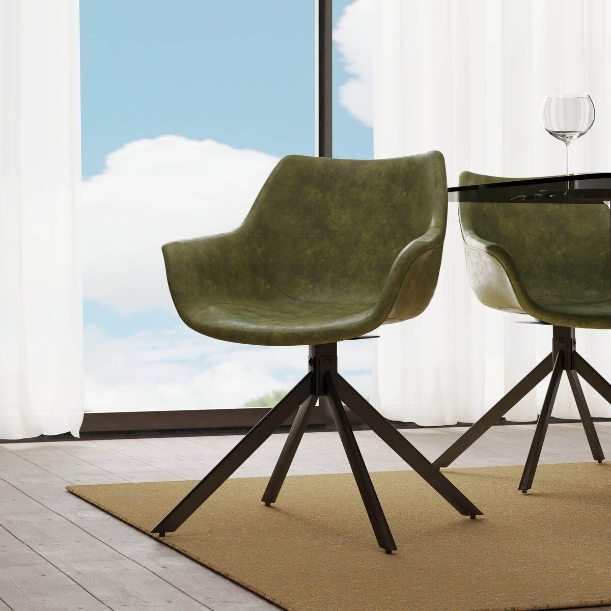 - LeisureMod Dining Chair Upholstered in Leather 360-Degree Swivel Armchair with P
