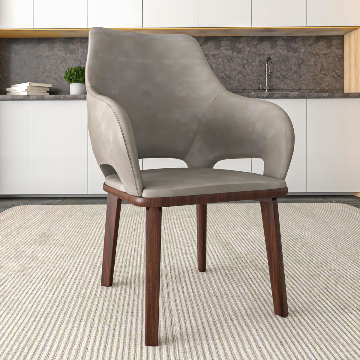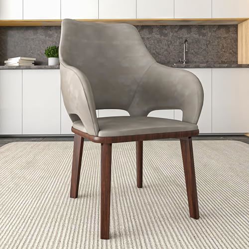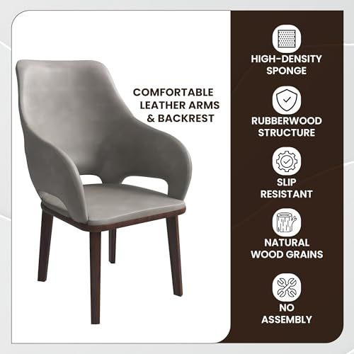 Bullet point: [CLEAN AND COMFORTABLE DESIGN] The dining chair features a flared back design and small openings on the lower back and sides. The flared backrest's curved shape extends to the armrests for added support and comfort, and the small openings improve airflow to keep you cool. The clean, smooth edges of the chair enhance its modern look, making it a stylish addition to any dining space.