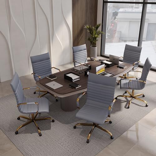 Bullet point: [High-Back Ribbed Design] The high-back design promotes good posture, offering essential support for your lumbar and upper back. Ribbed detailing on the seat and backrest enhances breathability and adds stylish texture, while the soft-padded armrests provide extra comfort, making it an ergonomic choice for long hours at the desk.