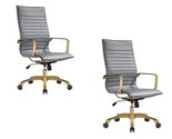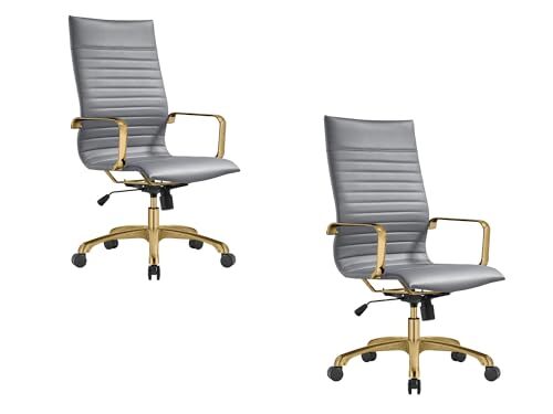Elevate your workspace with the LeisureMod Harris High-Back Leather Office Chair, designed for professionals who value both style and comfort. Upholstered in luxurious leather, this chair brings a sophisticated edge to any office decor while its ergonomic ribbed backrest and high-back design provide essential lumbar support. Built with a durable chrome stainless steel frame and padded armrests, the chair supports up to 275 lbs, offering robust stability for daily use. Enjoy effortless height adjustments and a smooth 360 swivel for complete mobility around your workspace, and lock in your preferred angle with the tilt lock feature for personalized comfort. Dual-wheel casters ensure seamless movement on various floor types, making this chair a versatile choice for any office setting. Choose the Harris High-Back Leather Office Chair to combine elegance, comfort, and functionality in one essential office upgrade.