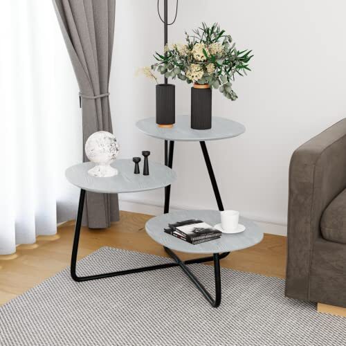 This modern accent end table is perfect for any office and living room, or any other living space. It comes with a three-shelf design offering plenty of storage options. The 3 shelves of the modern end table are crafted from a durable laminate board that provides plenty of space for decor. This modern end table features a modern design steel frame with powder coated finish, providing a durable and sturdy that will look great for years to come.