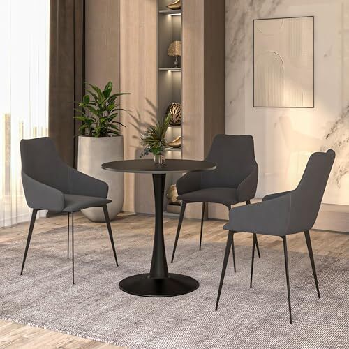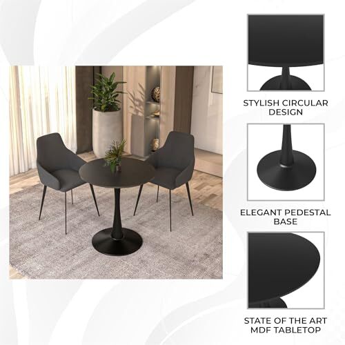 - Leisyremod Bristol 24" Round Dining Table Black Base with Black top