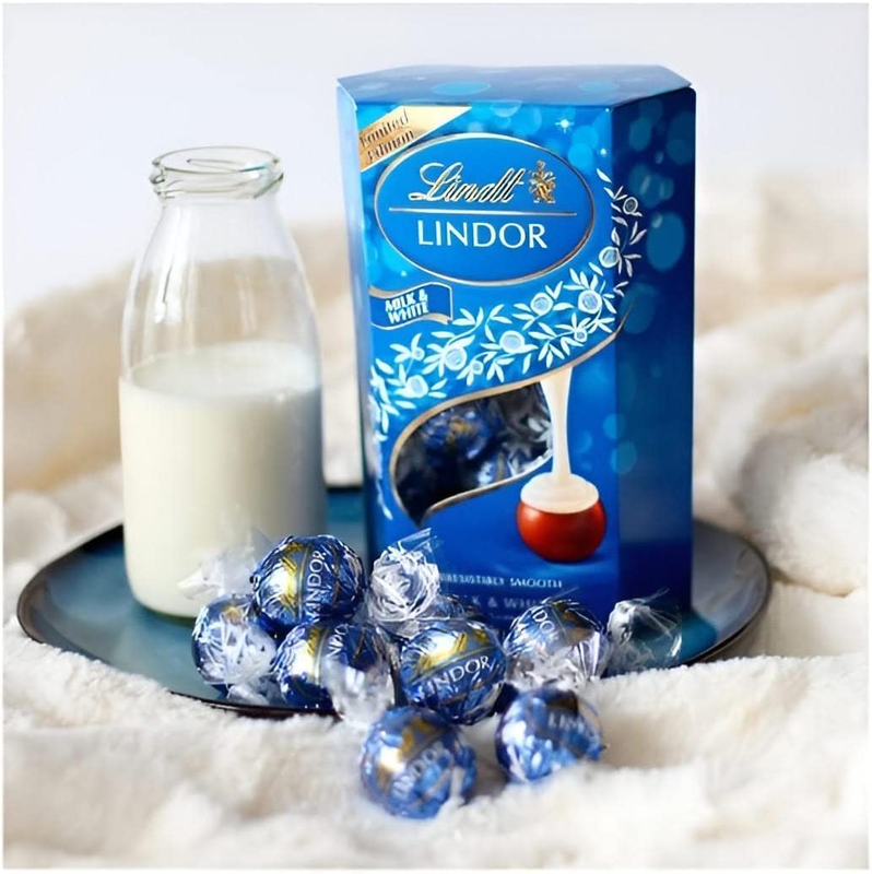 Milk White Chocolate Fusion: Lindt Lindor Milk White Chocolate Truffles offer a delicious combination of creamy milk chocolate and smooth white chocolate.