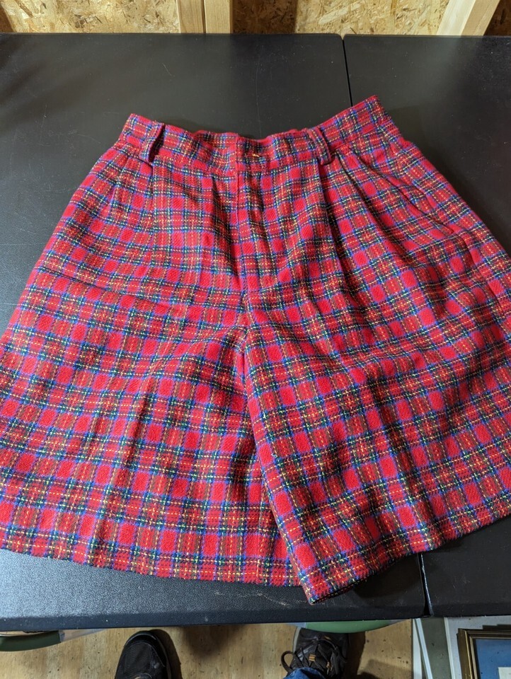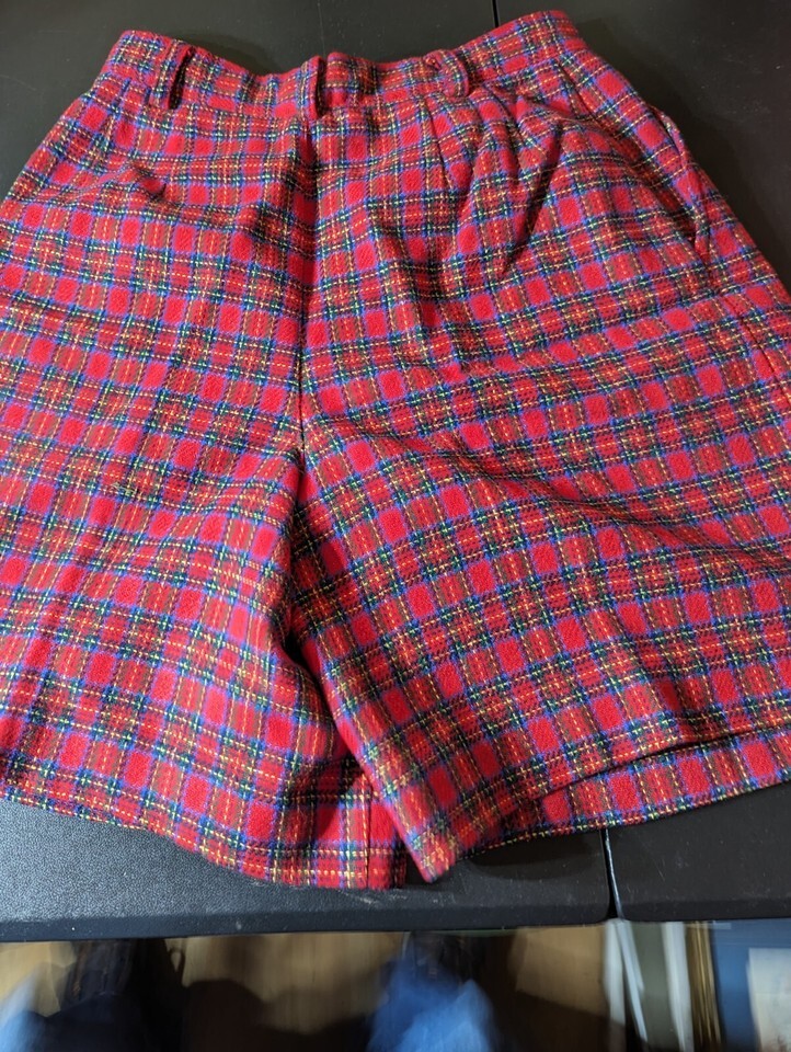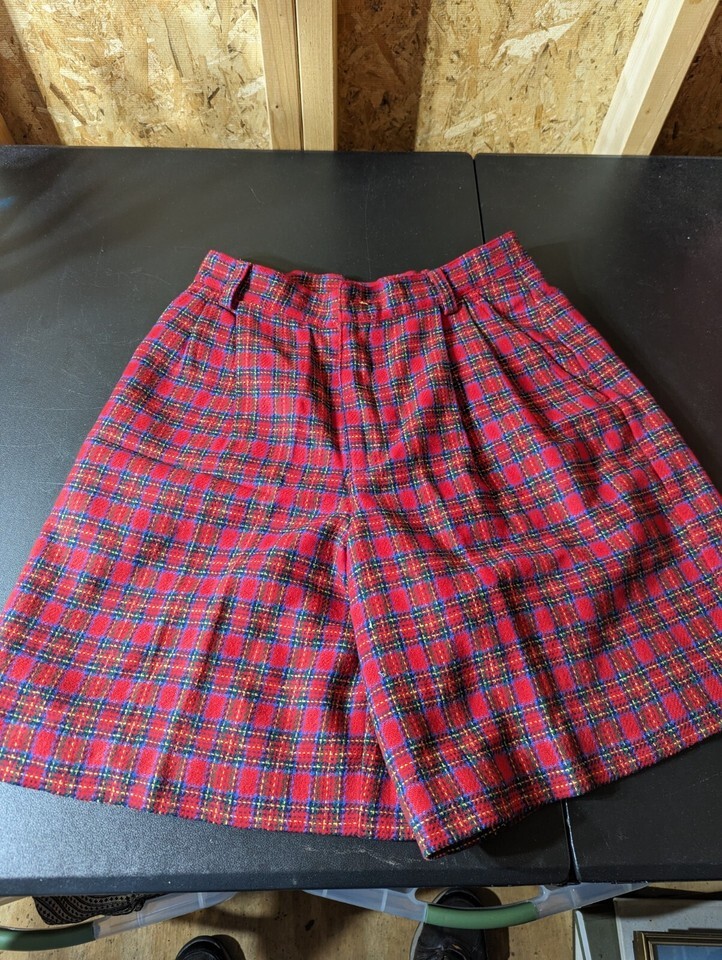Liz Sport size 10 wool blend acetate lining red plaid shorts