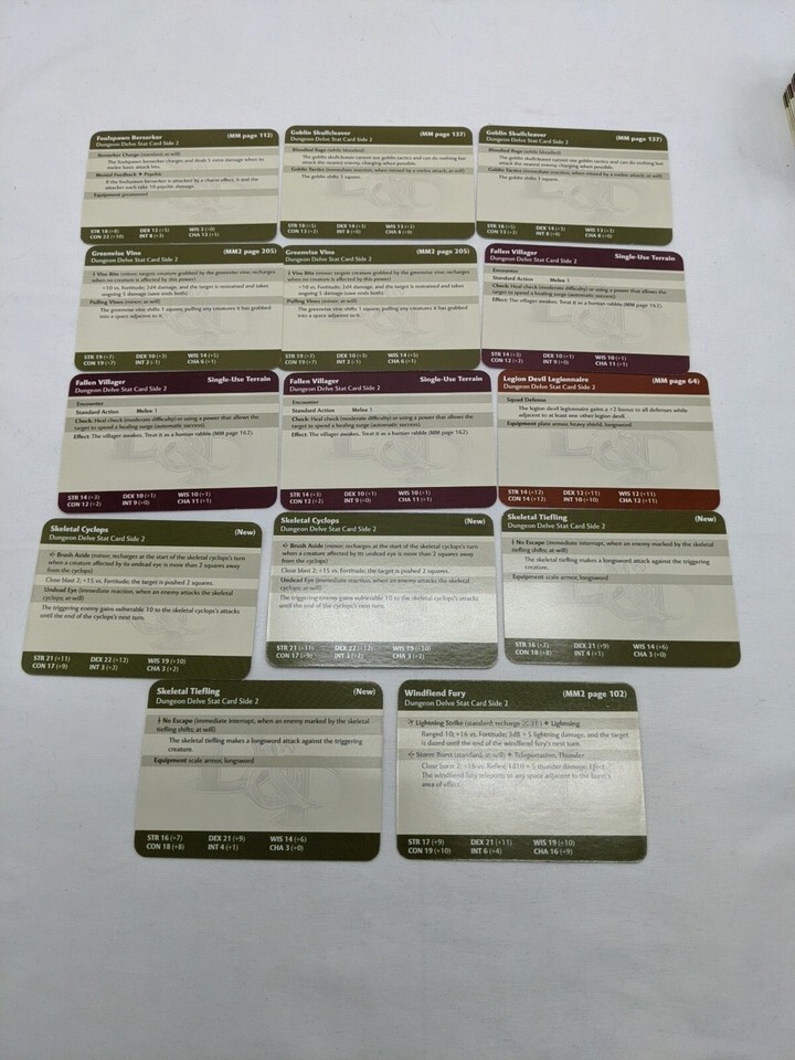 - Lot Of (14) Dungeons And Dragons Savage Encounter Miniatures Game Stat Cards