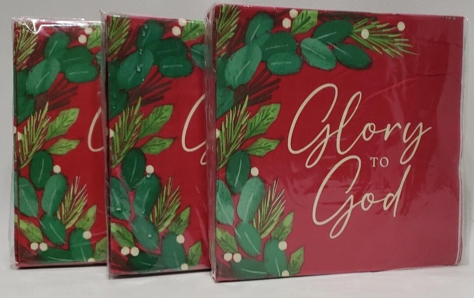 Lot Of 3 Design Studio Glory To God Christmas Napkins - Red 150 Count