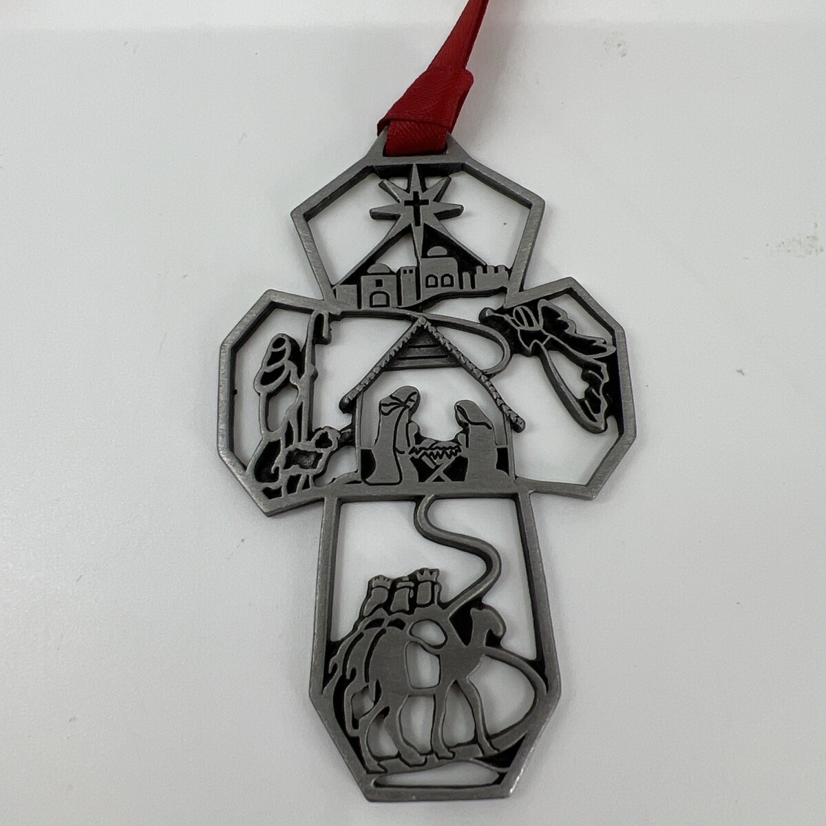 Lot of 4 Christmas Religious Nativity Creche Themed Ornaments Crosses Hymns