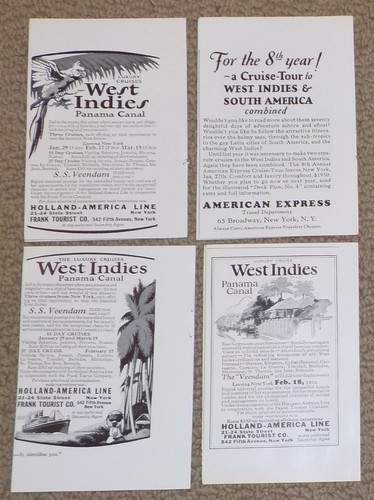 4) Lot of 4- 1920s/30s WEST INDIES PANAMA CANAL Print Ads Holland America Line B1E Ad Size (Approximate Overall) 3 1/2" x 5"